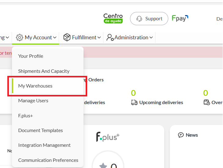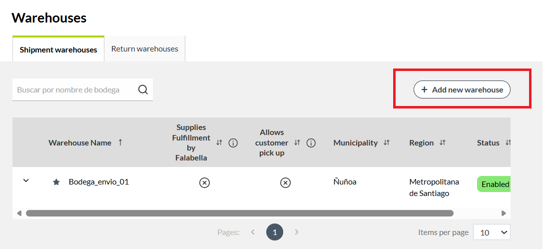 Consulta los IDs de tus bodegas desde la UI de Falabella o mediante el endpoint (GetWarehouses).